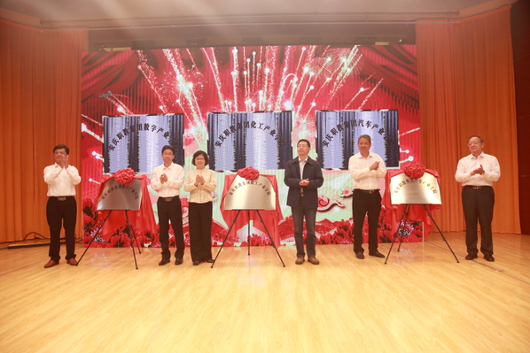 王愛武、汪時(shí)珍、畢明生及三個(gè)產(chǎn)業(yè)學(xué)院院長為產(chǎn)業(yè)學(xué)院揭牌。