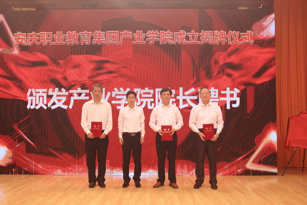 9月25日上午,安慶職教集團(tuán)化工產(chǎn)業(yè)學(xué)院、汽車產(chǎn)業(yè)學(xué)院和數(shù)字產(chǎn)業(yè)學(xué)院在集團(tuán)理事長單位安慶職業(yè)技術(shù)學(xué)院正式揭牌成立。副市長王愛武出席儀式并講話。集團(tuán)理事長安慶職業(yè)技術(shù)學(xué)院黨委書記王進(jìn),集團(tuán)副理事長、安慶職業(yè)技術(shù)學(xué)院院長畢明生,安慶師范大學(xué)副校長汪時(shí)珍以及安慶市教體局局長胡海生,集團(tuán)副理事長、安慶職業(yè)技術(shù)學(xué)院副院長李克讓,集團(tuán)理事會(huì)理事,產(chǎn)業(yè)學(xué)院理事會(huì)理事、院長、副院長,安慶職業(yè)技術(shù)學(xué)院領(lǐng)導(dǎo)班子成員出席。