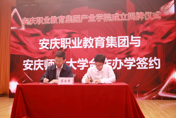 安慶職教集團(tuán)代表畢明生與安慶師范大學(xué)代表汪時(shí)珍、安慶職業(yè)技術(shù)學(xué)院代表畢明生與安慶技師學(xué)院代表李克讓、數(shù)字產(chǎn)業(yè)學(xué)院代表、安慶職業(yè)技術(shù)學(xué)院副院長譚維奇與合作企業(yè)代表、安徽峰速網(wǎng)絡(luò)智能科技有限公司董事長余賢良分別訂簽署了合作辦學(xué)協(xié)議。