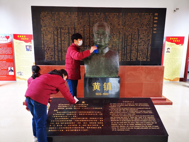 參觀結(jié)束后,同學(xué)們拿起勞動工具,自發(fā)的打掃陳列館的衛(wèi)生?!拔以诓潦命S鎮(zhèn)爺爺?shù)乃芟駮r,覺得黃鎮(zhèn)爺爺在注視著我,他勉勵我要爭做時代雷鋒?!眲⒖X同學(xué)如是說。