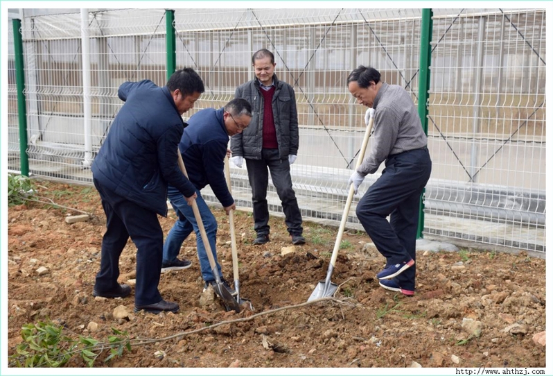 下午2點(diǎn)30分,學(xué)校農(nóng)業(yè)產(chǎn)業(yè)大棚附近的空地上熱火朝天,兩家單位的部分黨員、行政人員和學(xué)生志愿者參加了植樹。大家分工協(xié)作、默契配合、干勁十足,有的揮鍬鏟土,有的扶苗填土,有的夯土澆水,每一道工序都一絲不茍,一個(gè)個(gè)臉上寫滿了認(rèn)真、欣喜和期待。