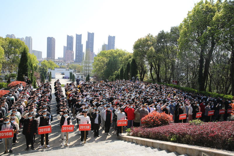 清明節(jié)至,日麗風(fēng)清,松柏凝翠,春潮涌動(dòng)。正值中國共產(chǎn)黨成立100周年之際,安徽天柱山旅游學(xué)校高一年級(jí)全體師生懷著無比崇敬的心情,高舉團(tuán)旗,徒步來到烈士陵園瞻仰革命烈士。