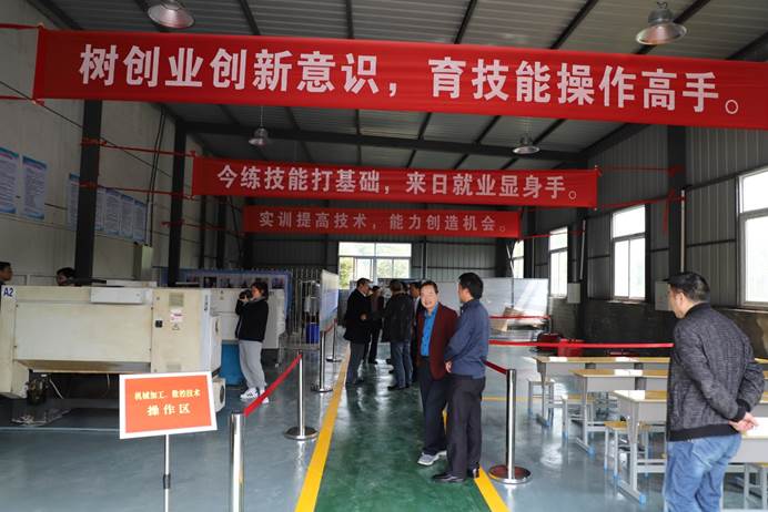 簽約儀式結束后,李克讓和姚彥和為安徽安慶技師學院東升校區(qū)揭牌,并實地參觀綜合實訓室。