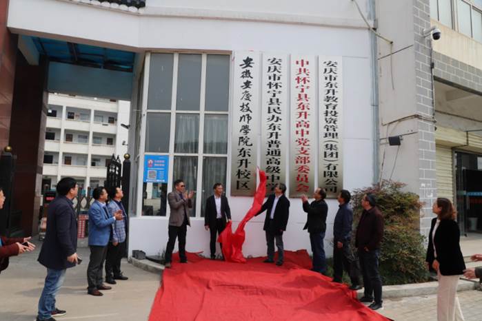 為深入學習貫徹全國職業(yè)教育大會精神,推動職普融通,4月15日上午,安徽安慶技師學院和懷寧縣民辦東升普通高級中學舉辦“職普融通、合作辦學”簽約、揭牌儀式。懷寧縣教育局黨委書記、局長姚彥和,副局長陳小明,安慶職教集團秘書長、安徽安慶技師學院黨委副書記、院長李克讓,安慶技師學院副院長徐波,安慶市民辦教育協(xié)會會長、安慶東升教育投資有限公司董事長劉月來,東升高中黨支部書記汪立明、校長潘金玉等出席簽約儀式。儀式由李克讓主持。