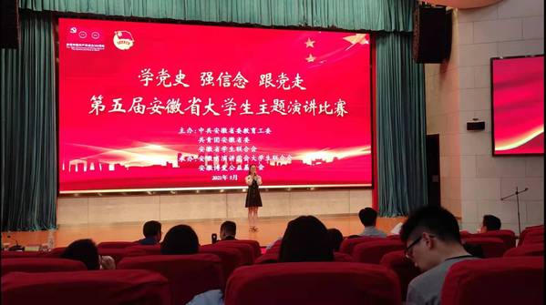 比賽現(xiàn)場,選手們圍繞學(xué)習(xí)“四史”、參加主題黨團日活動、疫情期間參加的社會實踐、家風(fēng)家教等主題,抒發(fā)了青年學(xué)子熱愛祖國、擁護中國共產(chǎn)黨、建設(shè)美好校園、提升綜合素質(zhì)的熱烈情感,表達(dá)了為新時代現(xiàn)代化美好安徽建設(shè)貢獻(xiàn)青春力量的決心和信心。孫澤芳同學(xué)以《用青春擁抱新時代》為題進(jìn)行展示,演講擲地有聲,表現(xiàn)清新自然,感情飽滿充沛,最終獲三等獎。(圖、文:馮豐 審核:陳穎)