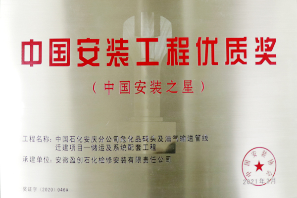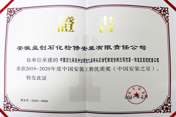 4月22日,2019-2020年度中國安裝工程優(yōu)質(zhì)獎(中國安裝之星)頒獎大會在濟(jì)南舉行,由盈創(chuàng)公司承建的中國石化安慶分公司?;反a頭及油氣輸送管線遷建項目——儲運(yùn)及系統(tǒng)配套工程 (以下簡稱8828工程)喜獲中國安裝工程優(yōu)質(zhì)獎——“中國安裝之星”,填補(bǔ)了公司安裝工程領(lǐng)域該獎項的空白。公司機(jī)動部經(jīng)理何忠民獲中國安裝工程優(yōu)質(zhì)獎(中國安裝之星)工程項目經(jīng)理特別榮譽(yù)。