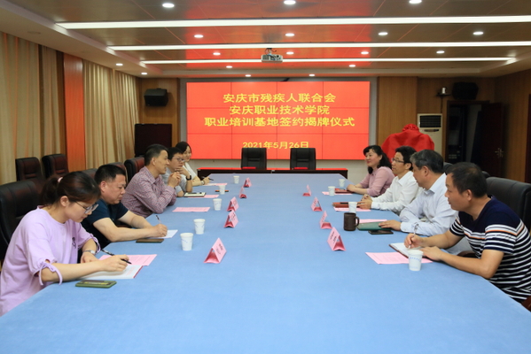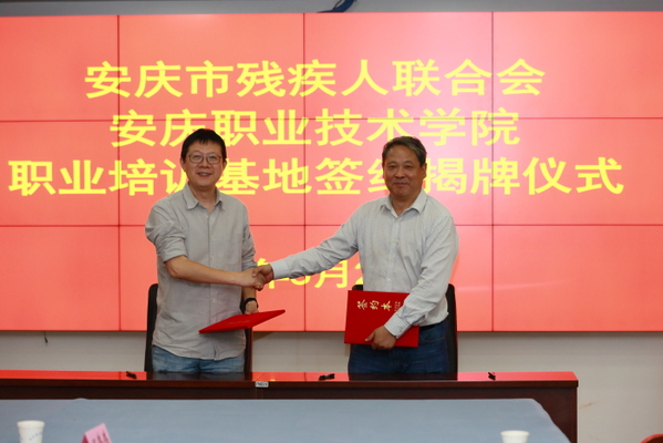 5月26日下午,安慶市殘疾人聯(lián)合會(huì)與安慶職業(yè)技術(shù)學(xué)院共建的安慶市殘疾人職業(yè)培訓(xùn)基地簽約揭牌儀式在安慶職院舉行。