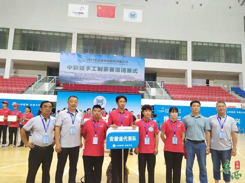 安慶大別山科技學校在2021年全國職業(yè)院校技能大賽(中職組)手工制茶項目比賽中榮獲團體三等獎,該校學生焦邵祺、余弘、儲如意、李炎4名選手參賽。