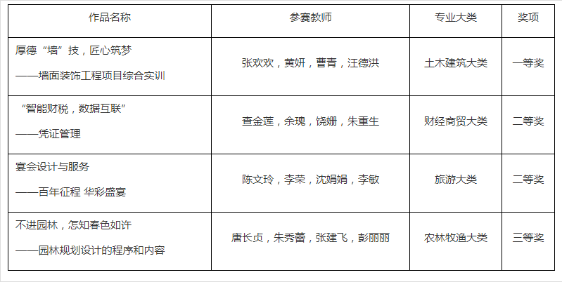 本次比賽得到了學(xué)校領(lǐng)導(dǎo)的高度重視,各職能部門亦給予了多方面的有力支持。自4月份大賽啟動以來,二級學(xué)院(部)積極動員教師組隊參加,為參賽團(tuán)隊提供最有力的支持,各參賽團(tuán)隊克服困難、精心設(shè)計、反復(fù)打磨,經(jīng)過校賽、省賽網(wǎng)評和省賽決賽的層層選拔,最終獲得較好的成績。