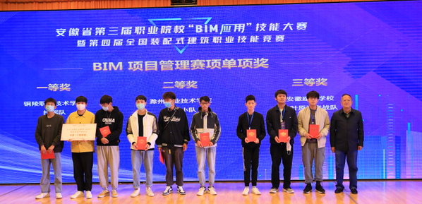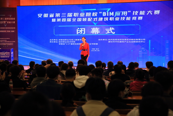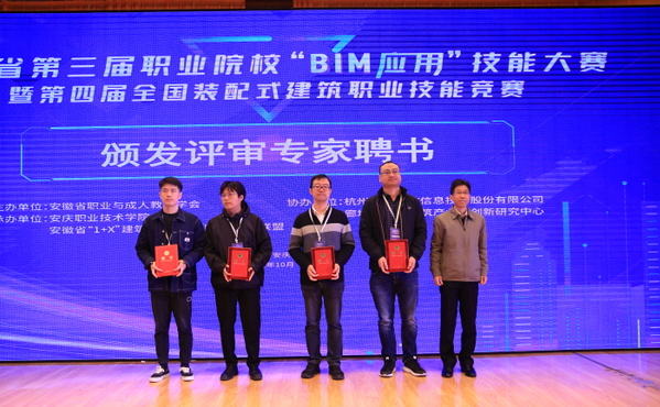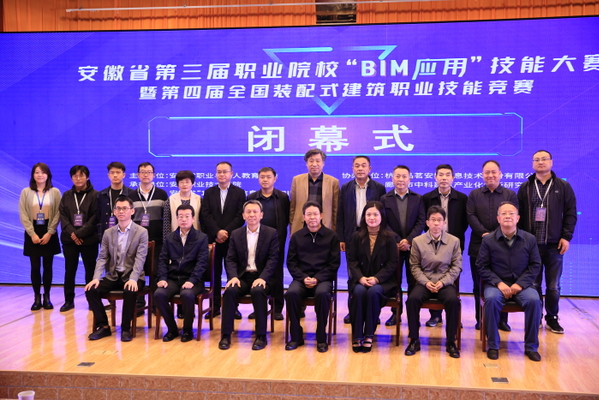 10月17日,安徽省第三屆職業(yè)院?!?/span>BIM應(yīng)用”技能大賽暨第四屆全國(guó)裝配式建筑職業(yè)技能競(jìng)賽建筑信息模型技術(shù)員(學(xué)生組)選拔賽完成全部比賽任務(wù),圓滿落幕(BIM全稱Building Information Modeling,即建筑信息模型)。安慶市副市長(zhǎng)楊林,省教育廳高教處主任任雯君,安慶職業(yè)技術(shù)學(xué)院黨委書記童宏葵、校長(zhǎng)畢明生等領(lǐng)導(dǎo)出席閉幕式,為獲獎(jiǎng)選手和團(tuán)體頒獎(jiǎng),與大賽評(píng)審專家合影留念。安徽省BIM工程中心副主任、安徽建筑大學(xué)土木工程系主任陳東對(duì)大賽進(jìn)行總結(jié)點(diǎn)評(píng)。中國(guó)建設(shè)教育協(xié)會(huì)教育技術(shù)專業(yè)委員會(huì)秘書長(zhǎng)、廊坊市中科建筑產(chǎn)業(yè)化創(chuàng)新研究中心副主任張建奇,安徽省“1+X”BIM 證書聯(lián)盟秘書長(zhǎng)、安慶職院副校長(zhǎng)譚維奇分別講話。安慶職院酒店管理專業(yè)教師沈娟娟主持儀式。