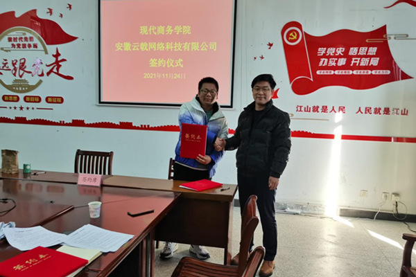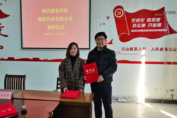 簽約儀式上,校企雙方均表達了強烈的合作意愿,表示將以人才培養(yǎng)基地的簽約為基礎(chǔ),不斷深化合作,共同建設(shè)好人才培養(yǎng)基地,培養(yǎng)更多更符合市場需求的高素質(zhì)技術(shù)技能型人才,服務(wù)區(qū)域經(jīng)濟高質(zhì)量發(fā)展。在輕松友好的氛圍中,現(xiàn)代商務(wù)學(xué)院與安徽云戟網(wǎng)絡(luò)科技有限公司、振宜汽車有限公司順利簽署合作協(xié)議。(文:蘇傳勝 審稿:李 專)