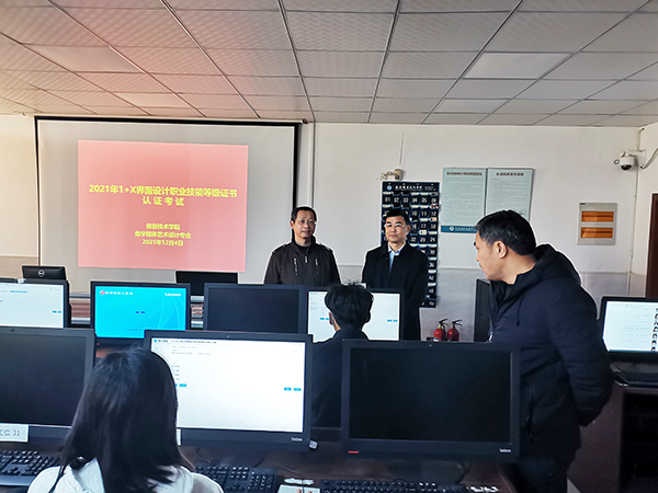 12月4日,安慶職業(yè)技術(shù)學(xué)院信息技術(shù)學(xué)院數(shù)字媒體藝術(shù)設(shè)計(jì)專(zhuān)業(yè)首次舉辦1+X界面設(shè)計(jì)職業(yè)技能等級(jí)證書(shū)認(rèn)證考試,2019級(jí)、2020級(jí)數(shù)字媒體藝術(shù)設(shè)計(jì)專(zhuān)業(yè)共計(jì)60名學(xué)生參加考試??荚嚻陂g,實(shí)驗(yàn)實(shí)訓(xùn)中心主任李進(jìn)恩、信息技術(shù)學(xué)院院長(zhǎng)疏國(guó)會(huì)等深入現(xiàn)場(chǎng)巡查考務(wù)工作。