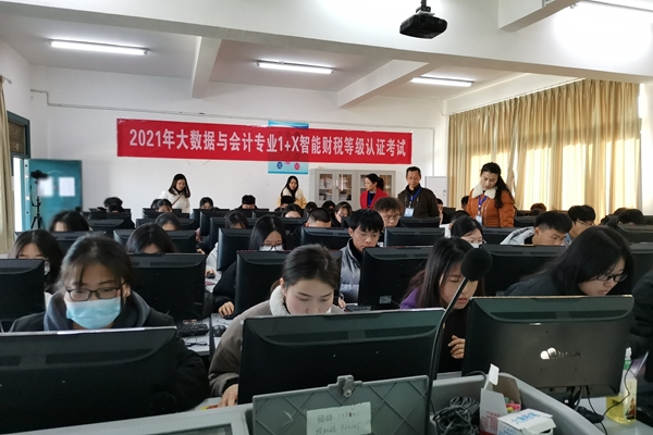 2021年12月4日,大數據與會計專業(yè)智能財稅職業(yè)技能等級認證考試在安慶職業(yè)技術學院順利舉辦。本次考試共有50名學生報名參加??荚嚻陂g,安慶職院實驗實訓中心主任李進恩、現代商務學院院長高飛等現場督察考務工作。