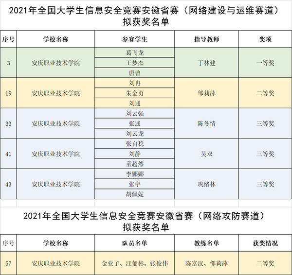 日前,由安徽省教育廳主辦,合肥工業(yè)大學(xué)、安徽理工大學(xué)、合肥學(xué)院、合肥職業(yè)技術(shù)學(xué)院、安徽郵電職業(yè)技術(shù)學(xué)院等院校承辦的2021年全國(guó)大學(xué)生信息安全競(jìng)賽(安徽賽區(qū))比賽結(jié)果公布,安慶職業(yè)技術(shù)學(xué)院信息技術(shù)學(xué)院選手團(tuán)結(jié)一心,頑強(qiáng)拼搏,共取得一等獎(jiǎng)1項(xiàng)、二等獎(jiǎng)2項(xiàng)、三等獎(jiǎng)3項(xiàng)的優(yōu)異成績(jī)。