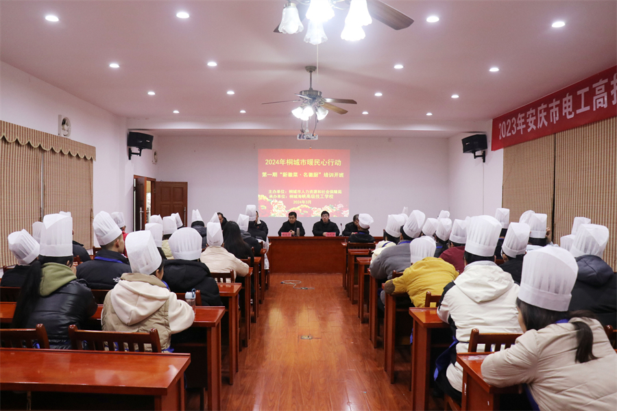 3月5日上午,2024年“新徽菜·名徽廚”暖民心行動(dòng)培訓(xùn)首期開班式在桐城高級(jí)技工學(xué)校舉行開班式。桐城市職業(yè)技能鑒定中心、市商務(wù)局、市就業(yè)人才服務(wù)中心、桐城高級(jí)技工學(xué)校等相關(guān)部門負(fù)責(zé)人出席。桐城水碗烹飪技藝非遺傳承人蔡冬云參加開班式并開講第一課。