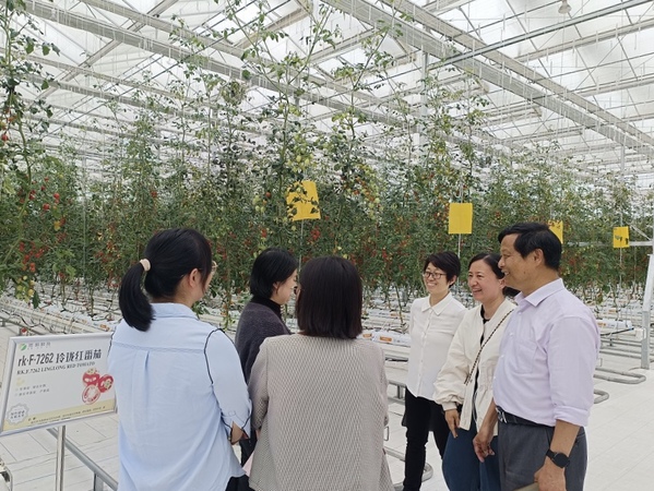 儀式結(jié)束后,潤(rùn)科董事長(zhǎng)助理帶領(lǐng)雙方參觀了公司的智能溫室大棚,企業(yè)方代表詳細(xì)闡述了當(dāng)前智慧農(nóng)業(yè)的發(fā)展趨勢(shì)和前景。李院長(zhǎng)簡(jiǎn)要介紹了農(nóng)林與服裝學(xué)院的基本情況,并就安徽省雙高專業(yè)建設(shè)、產(chǎn)學(xué)研合作和學(xué)生就業(yè)等工作與潤(rùn)科做了深入交流,并希望與潤(rùn)科開(kāi)展深入合作。校企雙方經(jīng)交流探討,初步達(dá)成了今后在產(chǎn)學(xué)研、人才培養(yǎng)和學(xué)生就業(yè)創(chuàng)業(yè)等方面的合作意愿。(文:許慧慧 圖:徐基艷 審稿:劉 冬)