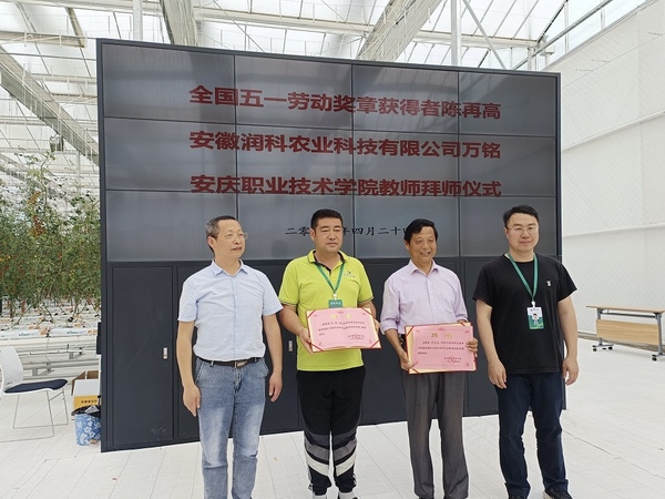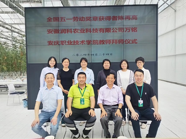 為深入推進(jìn)教師隊(duì)伍建設(shè)工作,創(chuàng)新“師帶徒”方式,安慶職業(yè)技術(shù)學(xué)院農(nóng)林與服裝學(xué)院組織開(kāi)展“名師導(dǎo)師帶徒”工作。4月24日,農(nóng)林與服裝學(xué)院黨總支書、院長(zhǎng)李進(jìn)恩帶領(lǐng)植物保護(hù)與檢疫和園藝技術(shù)專業(yè)團(tuán)隊(duì)教師在安徽潤(rùn)科農(nóng)業(yè)科技有限公司向全國(guó)五一勞動(dòng)獎(jiǎng)?wù)芦@得者陳再高和安徽潤(rùn)科農(nóng)業(yè)科技有限公司副總經(jīng)理萬(wàn)銘拜師。