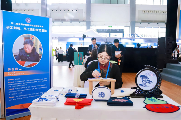 5月8日,安慶皖江中等專業(yè)學(xué)校教師、國(guó)家非遺望江挑花省級(jí)非遺傳承人湯彩霞攜望江挑花作品亮相第二屆全國(guó)鄉(xiāng)村振興職業(yè)技能大賽,并做客新華社鄉(xiāng)村振興頻道,全面推介國(guó)家非遺望江挑花,展示望江優(yōu)秀傳統(tǒng)文化。