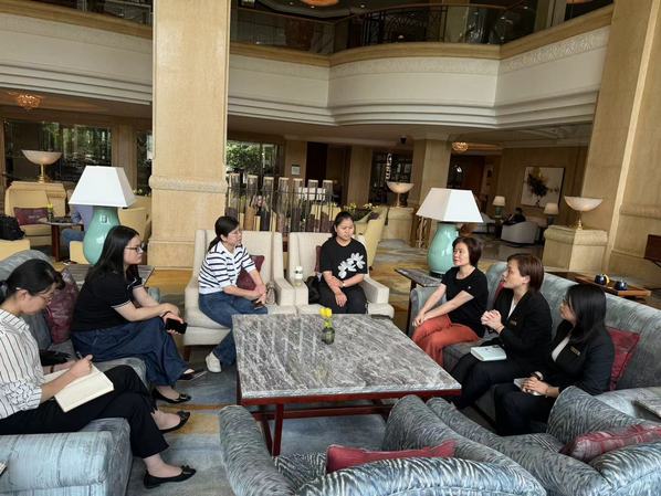 調(diào)研小組隨后走訪了位于上海青浦區(qū)的卓越鉑爾曼酒店,看望了三名2021級酒店管理專業(yè)的在崗實習(xí)生,詳細了解了學(xué)生的工作、生活情況。陳穎勉勵實習(xí)生踏實工作,力爭上游,為學(xué)弟學(xué)妹們樹立好的榜樣。