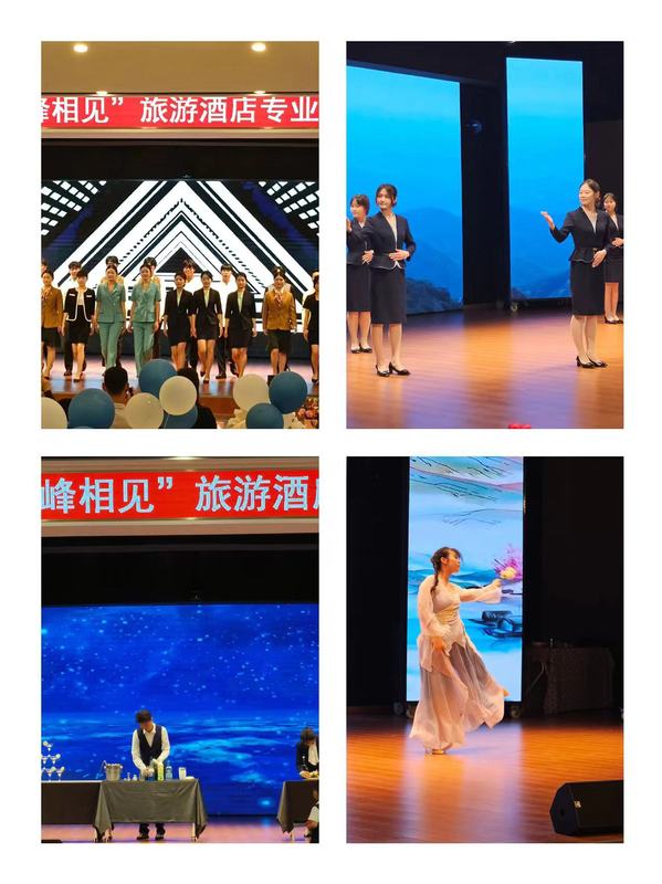 此次展演活動包含酒店、旅游專業(yè)技能展演和冷餐會兩個部分。酒店專業(yè)技能展演有酒店工服秀、職業(yè)禮儀操、托盤舞、調(diào)酒、插花、茶藝等相關(guān)技能展示。旅游專業(yè)技能展演有拉丁舞、藏族舞、竹笛、傣族舞、葫蘆絲等才藝展示。冷餐會內(nèi)容涵蓋了嘉賓迎送、嘉賓餐中服務(wù)、果盤制作、伴手禮制作、會場布置等相關(guān)技能展示,旨在通過讓同學(xué)們“沉浸式”現(xiàn)場操作,將《宴會餐飲》《酒店客房服務(wù)》《酒店禮儀》《酒店技能實訓(xùn)》等相關(guān)理實課程、旅游技能大賽備賽等學(xué)習(xí)成果進行集中展示和運用,促進一二課堂同向同行。
