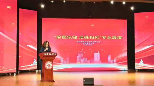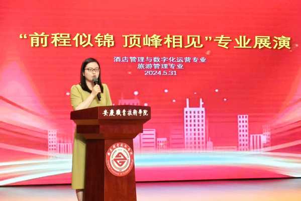 為提升和檢驗專業(yè)技能學(xué)習(xí)成效,促進課程思政第一課堂與第二課堂同向同行,推動畢業(yè)生本地就業(yè),5月31日下午,安慶職業(yè)技術(shù)學(xué)院管理服務(wù)學(xué)院酒店數(shù)字化運營、旅游管理專業(yè)聯(lián)合在幼兒三期實訓(xùn)室舉行“前程似錦·頂峰相見”校企共聯(lián)專業(yè)展演活動?;顒友埩税矐c會展中心會議中心酒店、合肥豐大國際酒店、安慶豐大酒店、安慶香瀾豪庭酒店、安慶碧桂園鳳凰酒店、安慶世紀緣酒店、中國移動安慶分公司等文旅相關(guān)企業(yè)出席。學(xué)校教務(wù)處、校團委等負責(zé)同志、管理服務(wù)學(xué)院班子及師生代表參加了此次展演活動。