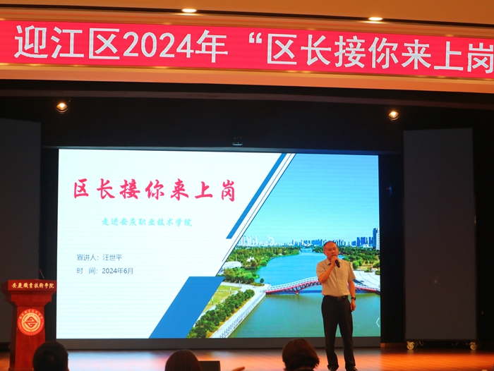 初夏時(shí)節(jié),萬(wàn)物蔥蘢,轉(zhuǎn)眼之間,2024年畢業(yè)季如期而至,“區(qū)長(zhǎng)接你來(lái)上崗”活動(dòng)也如期而至。這是迎江區(qū)第三次與安慶職業(yè)技術(shù)學(xué)院共同開(kāi)展此項(xiàng)活動(dòng),活動(dòng)已經(jīng)成為迎江區(qū)和安慶職院校地合作的一個(gè)重要品牌。