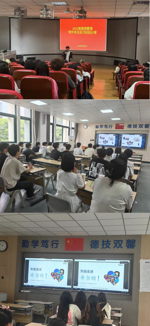 針對有求職意向的學生,通過學院網(wǎng)站、學工微信群、班級群等信息發(fā)布平臺及時向畢業(yè)生發(fā)布各類就業(yè)信息,力爭實現(xiàn)“就業(yè)信息全覆蓋”。邀請上海祥源希爾頓HR、安慶思佰特總經(jīng)理開展了專場講座,從行業(yè)前沿動態(tài)、實際工作情況、求職面試技巧等方面幫助學生提升求職能力。同時,學院積極發(fā)動校友資源,邀請往屆優(yōu)秀畢業(yè)生代表進校宣講,如2016屆酒店管理專業(yè)畢業(yè)生李正--寧波錢湖國賓館人事經(jīng)理、2023屆旅游管理專業(yè)畢業(yè)生韓信哲--溫州暢旅國際旅游有限公司合伙人等優(yōu)秀校友,同2022級學生分享成長經(jīng)歷、傳授求職及職場工作經(jīng)驗,用朋輩的榜樣作用引導學生轉變就業(yè)觀念。