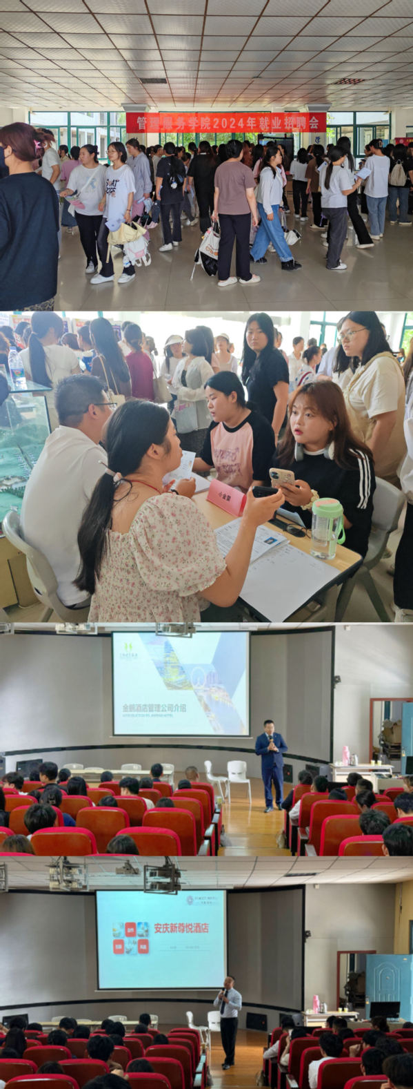 2024年上半年,該院黨總支成員及各專業(yè)建設負責人、輔導員及專任教師等先后走訪十余家企業(yè)。通過“走出去”與“請進來”相結合的方式,邀請30余家企業(yè)進校洽談宣講。訪企拓崗搭建了校企合作交流平臺,經(jīng)過努力,該院先后與安慶豐大國際酒店、泰康之家徽園等多家行業(yè)頭部企業(yè)簽訂合作協(xié)議,開拓實習就業(yè)崗位近400個。