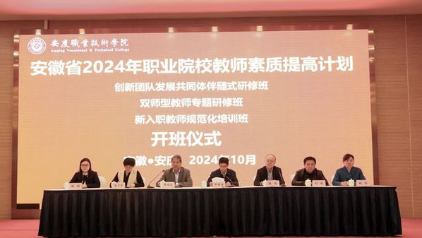 10月20日,安慶職業(yè)技術學院承辦的安徽省2024年高職院校教師素質提高計劃省級配套項目——土木建筑大類創(chuàng)新團隊發(fā)展共同體伴隨式研修、“雙師型”教師專題研修班、新入職教師規(guī)范化培訓班,在安慶碧桂園鳳凰酒店開班。校長畢明生出席開班儀式并致歡迎辭,安徽省高等學校師資培訓中心副主任張韜講話,安慶職院黨委副書記李克讓主持開班儀式,國家創(chuàng)新團隊帶頭人、黃大年團隊帶頭人、國家級教學名師陳月萍教授介紹了培訓情況。學校相關學院的負責人和來自全省各高職院校的82名參訓教師參加。