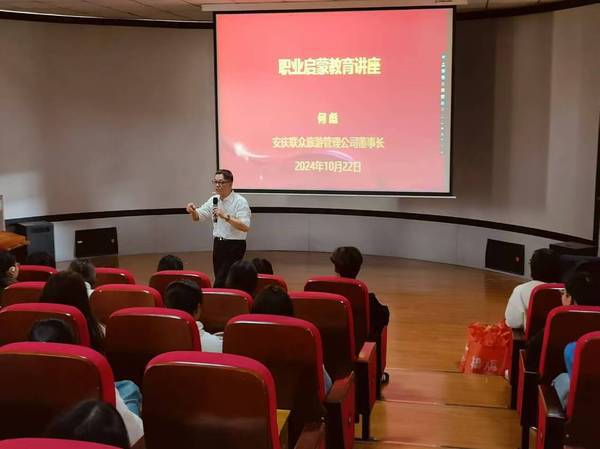 為更好地培養(yǎng)學生的綜合素養(yǎng),引導學生做好學涯和職業(yè)生涯規(guī)劃,10月23日下午,安慶職業(yè)技術(shù)學院管理服務(wù)學院邀請安慶聯(lián)眾旅游管理公司董事長何彪為2024級旅游管理專業(yè)新生開展了職業(yè)啟蒙教育講座。