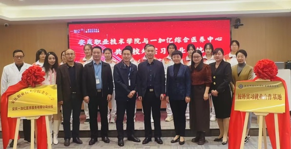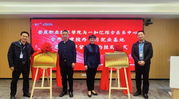 為響應(yīng)國家實施積極應(yīng)對人口老齡化戰(zhàn)略,強化職業(yè)教育與產(chǎn)業(yè)企業(yè)需求相對接,積極助力推進(jìn)老齡事業(yè)、老齡產(chǎn)業(yè)和養(yǎng)老專業(yè)協(xié)同發(fā)展,10月24日上午,安慶職業(yè)技術(shù)學(xué)院管理服務(wù)學(xué)院和老年大學(xué)與安慶一加億綜合醫(yī)養(yǎng)中心,舉行合作共建“安慶職業(yè)技術(shù)學(xué)院管理服務(wù)學(xué)院一加億校外實習(xí)就業(yè)基地”和“安慶職業(yè)技術(shù)學(xué)院老年大學(xué)一加億分?!焙灱s活動。安慶職院黨委委員、組織部部長高潤霞、安慶市民政局四級調(diào)研員周志遠(yuǎn)、安慶一加億醫(yī)養(yǎng)服務(wù)有限公司法人代表劉林志出席活動,管理服務(wù)學(xué)院、繼續(xù)教育學(xué)院相關(guān)負(fù)責(zé)同志及師生代表參加了簽約儀式。