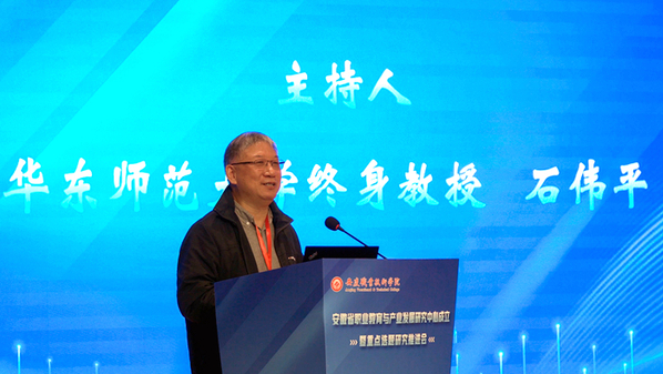 石偉平教授在主持課題發(fā)布和主旨報告環(huán)節(jié)中,特別表達(dá)了對研究中心未來發(fā)展的期許。他指出,在新質(zhì)生產(chǎn)力發(fā)展過程中,產(chǎn)教融合不僅是職業(yè)教育也是高等教育的重要課題。作為與產(chǎn)業(yè)升級、與經(jīng)濟(jì)發(fā)展聯(lián)系最為密切的類型教育,職業(yè)教育要在推進(jìn)產(chǎn)教融合中作出更加突出的貢獻(xiàn)。統(tǒng)籌整合資源成立職業(yè)教育與產(chǎn)業(yè)發(fā)展研究中心,是安徽職業(yè)教育發(fā)展的迫切需要,也是安徽產(chǎn)業(yè)經(jīng)濟(jì)發(fā)展的迫切需要,希望研究中心能夠盡快建設(shè)成為全國職業(yè)教育研究的重要陣地。